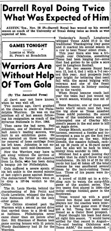 1. The last football game he saw before he graduated would have been a 27-0 loss to us in DKR's second season at Austin. He had no idea how much misery he was in for. He would go on to see A&M lose 15 of their next 16 games against us. During that stretch, we won more national championships (3) than A&M had winning seasons (2).