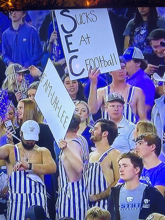 18. Nice Horns down by the fat ass KSU fan. Glad to know we aren’t playing but still get some good publicity. RIP, fatty.