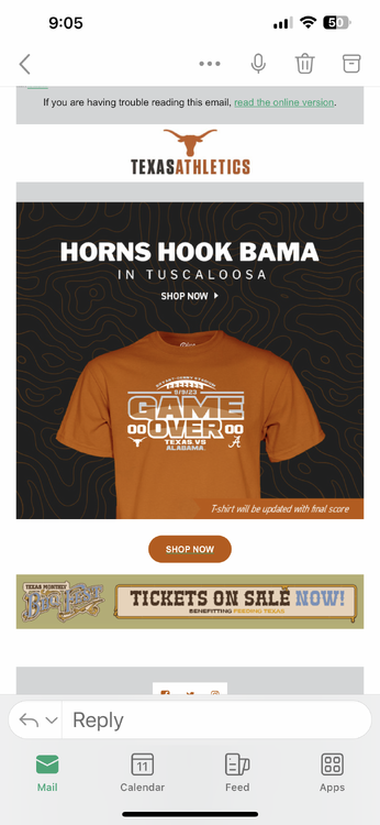 16. The wife received this email this morning. She’s a huge Bama fan so she didn’t like seeing this first thing in the morning
