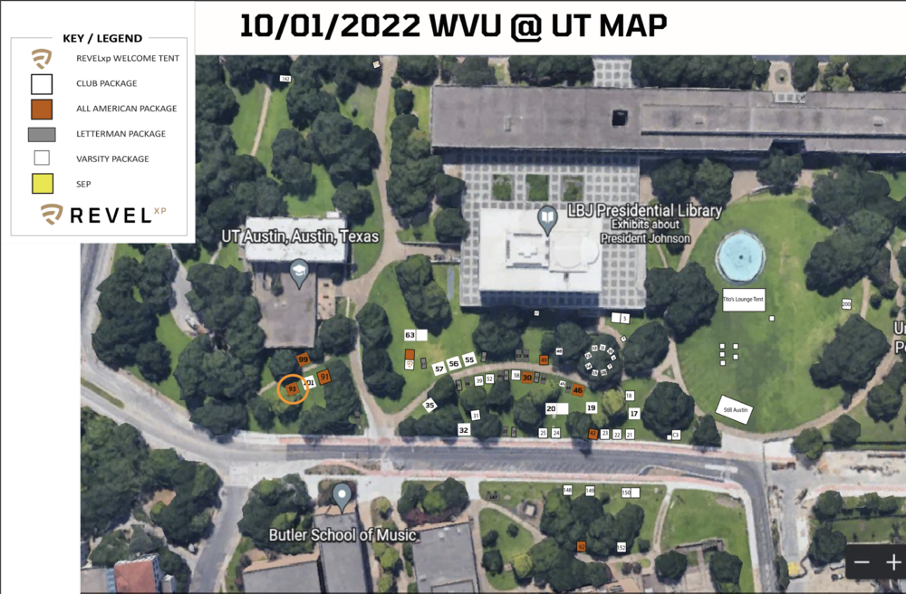 12. Is there a tailgate for WV? I'll be attending another tailgate close to the LBJ Library so I'll make an appearance at both. What's the closest non-garage parking lot?