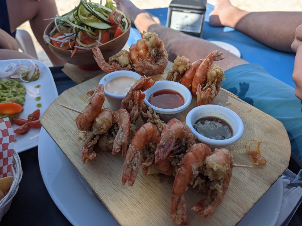 Thanks to everyone for all the infor on this thread, we had a fantastic trip. It went so well I think I got some family buy-in to try some other places I have on my wishlist such as Holbox and Sayulita. Spoilering the pics because this is going to be longcat enough already. We stayed at Hotel Secreto, and it was great. We spent very little time there, but all the staff were very friendly and helpful, with lots of good tips. The day we rented a golf cart they called one which was delivered and picked up from the lobby so we didn't have to jack around with a rental place. I wouldn't be averse to trying the place next door (Media Luna) or the house next to that sometime as well, especially if we came with a group with kids (I didn't know that both are owned/run by the same family, who also operate Keen M). We went out for a day and a half with Keen M, and while the seas were rough (everybody wore a scopolamine patch on the second day), the fishing was way better than I hoped -- everyone caught something every day, and on the second day everybody got at least one sailfish. I think if we did it again I'd be fine with just half days (if you're not catching much on a half day, adding a few hours probably won't get you much more action). We spent a couple days on Playa Norte. We got chairs at the Mayan Beach Club in return for ordering food/drinks and had a great time. Service was great, and the food was way better than I would have expected. Best chilaquiles I had on the trip were there (not on the menu). We were going to take the boys to snorkel at Garrafon de Castilla, but unfortunately it seems to be shut down. We didn't want to do the big Garrafon Reef park and tourist trap, so we tried Kin Ha/Parque de los Suenos. It was too rough that day to swim, but this would have been more our speed, and the food was good. Speaking of which, the food pretty much everywhere on the island was awesome. Portion sizes generally bordered on obscene. We didn't have a bad meal there, although a couple places we ate out of convenience (Stingray's, Snapper's, Kokonuts) were nothing special. Bastos was very good, but we were a bit underwhelmed after all the hype. Fredy's definitely did not disappoint, though -- great food, and a great guy. Some food highlights: La Playita was our after-fishing spot (practically next to Keen M), and filled the boys up after they puked up their toenails on the boat. Cool spot on the beach. Ridiculous portions, included is the seafood platter for two. North Garden was great for breakfast, as advertised.. They actually just opened a space for dinner next door, called Grill Garden, a few days before we got there. It was really, really good. Breakfast at Rooster was also good, with the obligatory chilaquiles. As a side note, it was nice that all over Isla when you asked for salsa picante, they brought you awesome habanero stuff, not weak ass gringo shit. Ta-Ki-To looked like a pretty new taco joint on Hidalgo. They had the trompo rolling but it was still clean enough that my family would eat there - and they wanted to eat there every day after that. Next time, though, I'm going to duck into some of the crappier looking taco joints we saw on our golf cart trip to the south side. The Canadian lady who was working at Fredy's (you got me) told us about her friend's new place on the south end, El Borracho Burro. It was great - outdoor dining and bar, excellent food. I don't remember what the potato things were called, but I think it was Spanish for "Get in Mah Belly." This was where we also managed to catch the obligatory Michael Jackson impersonator show. Lola Valentina was outstanding for dinner. The poblano fish was one of the best of the many excellent meals I had on Isla. We had a fantastic trip. Everyone we met was awesome, and we tipped the hell out of them hoping they hang in there until we can make it back. Thanks again to all y'all assholes for the info. (Sorry, don't know why these pics are appended to the end, but I can't seem to make them go away)