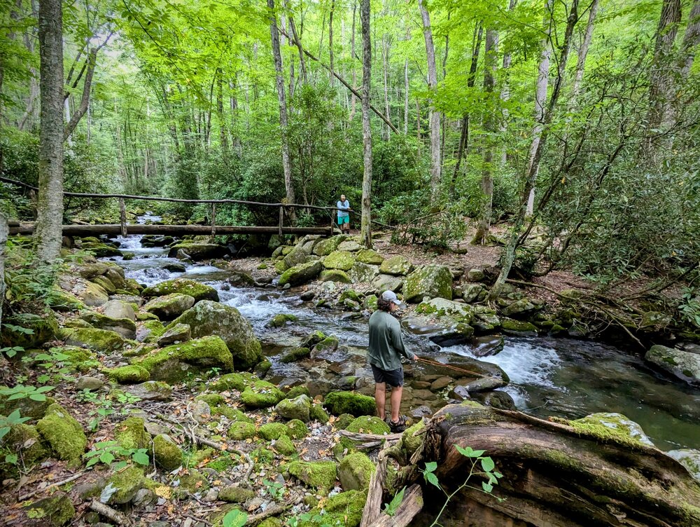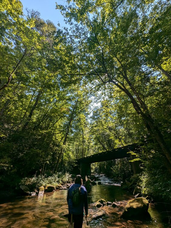 Took my boys on a guys trip to the Smokies, had never been. Some selections, more in the fishing thread with inane commentary. This feels worlds away from Hwy 441 despite it being 20 yards uphill. Nantahala River Noland Creek Proprietor of Tommy's Paradise Mixology and Restaurant, featuring the swan song of $0.25 wings that night. Far out, man.