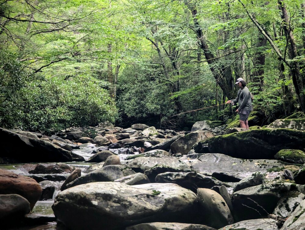 Damn. Sucks to try to follow that, but I did promise follow-up on our first-time trip to the Smokies. We didn't have a whole lot of luck, but neither of my boys nor I cared. It was phenomenally beautiful and just felt like we were blessed to be wading those streams, whether we caught anything or not (factor in that I suck at fly fishing). Gratuitous photos to follow: The place we stayed was on the Nantahala river, which was beautiful and away from all the tourist garbage. Recommended. They let water out of the dam throughout the day, so the better wade fishing is in the morning or later evening. Only on the way out did we drive by the upstream section of the river below the dam, which looks like it might have been better fishing. Oh well, next time. We did catch a few browns here, not huge but tons of fun, especially since we caught them on some of my earlier (and uglier) attempts at tying some elk hair caddis and brassie nymphs: We spent one morning fishing Noland Creek in the park just outside of Bryson City: Had a great time despite not catching anything. I know there's fish in there, though, because as we were leaving one of our guides from earlier on the trip was pulling up. I told him he was welcome for us leaving him all the fish. I didn't (and honestly still don't) know a ton about the GSMNP, but it's basically bisected by Hwy 441, which runs along a branch of the Pigeon River on the TN side and the Oconaluftee on the NC side. We thought it was weird that we only saw three other fishermen out there the whole time. Found out from our guide later that most people stick to the larger stocked rivers instead of chasing tiny brook trout in little pools with overhanging branches. Don't care, fished it anyway and wouldn't trade it for big fat stockers. This was my best effort, and I was plenty proud of it: My younger son caught this wild brookie as the last fish of the trip (his brother yelled at him for lipping it, but he didn't have his net): So now about our guide. Based on a local recommendation rather than the Google algorithm, we went out with Mac Brown. Holy shit, this guy was phenomenal. At this point we've been out with a good number of guides, and fortunately never had a bad one, but Mac set a new standard. We learned more in one day with him than in all our other instruction combined (and a lot of it quite contrary to previous teaching). The guy is a complete madman genius and a total blast to hang around with, knows everybody in or adjacent to the industry, and is one of those folks who you suspect might be mostly full of shit -- until he starts talking about something more in your wheelhouse, and you realize he actually knows a fuckton about everything (he was describing to my younger one how to do a better hookset in the context of the evolution of the mammalian brain and myelination pathways of the limbic system). We've never had more fun catching so few fish, and this experience will make every day of fishing afterwards better because of what we learned. I cannot say how much I loved this guy. When we met him and were unpacking our gear, I knew we were in for a fun day when he about shit himself that we brought fiberglass rods (we usually fish smaller stuff here at home). My prized rod is a custom Epic 4wt from New Zealand my wife got me for our anniversary, that I know I've mentioned on this site before. When I put it together, he said, "Aw hell, I know the guy who started that company! Let's take a picture of it with us and I'll send it to him!" He proceeded to regale us throughout the day with tales of multiple insane escapades including helping with the manhunt for the 1996 Olympic Bomber. It was like getting fly fishing lessons from Bill Brasky. Anyway, this post has been waaaaaay too long, but suffice it to say it was a fantastic experience despite the few fish we caught. Each one was a treasure. This was a particularly emotional trip for me, as my older one is in college now and my younger is a HS Jr, so this is the age where they are growing into men, and I feel so blessed that we can share these experiences and a common interest in being terrible fly fishermen, both now and over the years to come when they will become competent and I will still suck. It was also particularly meaningful to me since, as I know I've mentioned on other Cormac McCarthy threads, that his book The Road holds a special place for me and my relationship with my boys. I know I've also mentioned that my aforementioned prized rod bears an inscription taken from the book. Part of that story was set in this region, particularly that highway alongside which we caught wild brook trout, and it was in the back of my mind for the entirety of the trip, in particular the closing paragraph, which reads: "Once there were brook trout in the streams in the mountains. You could see them standing in the amber current where the white edges of their fins wimpled softly in the flow. They smelled of moss in your hand. Polished and muscular and torsional. On their backs were vermiculate patterns that were maps of the world in its becoming. Maps and mazes. Of a thing which could not be put back. Not be made right again. In the deep glens where they lived all things were older than man and they hummed of mystery."