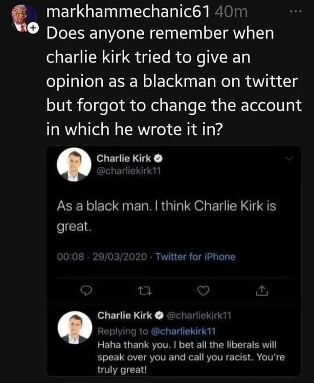 2. Accurately posting Charlie Kirk's own words that he deliberately and unapologetically spoke in public and correctly attributing that quote to Charlie Kirk. That's what people are getting fired for now.