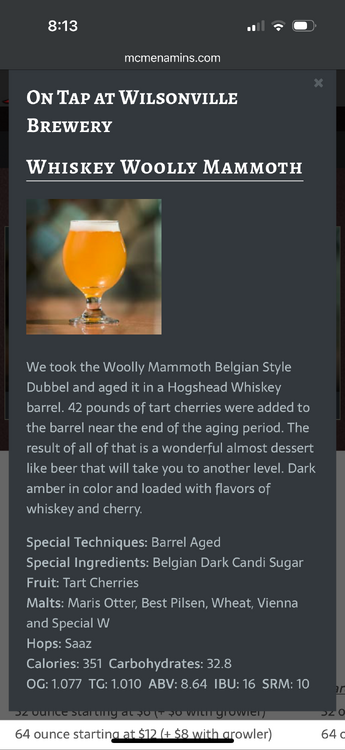 15. Was here on Saturday https://www.mcmenamins.com/wilsonville-old-church-pub/wilsonville-brewery You can thumb through their offerings. I didn’t have the privilege, but I want to draw attention to this one