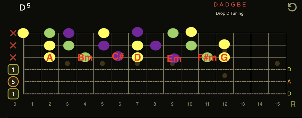 Sure, man. I hope it helps to understand why someone would bother with different tunings after they have spent all this time "mastering" the major scale, CAGED and modal patterns in standard tuning. To take it full circle to your triad study, take that last idea that you can use open 4th, 5th and 6th string as a drone and play melodically on the 1st, 2nd and 3rd strings -- use triad patterns in the key of D on the 1st, 2nd and 3rd strings over the droned 4th/5th/6th strings. Each color grouping here with a root on the 3rd string is a triad in the key of D. Walk the scale as triads up and down the fretboard. Play chord progressions with these triads. Do it while droning the open D power chord on the 4th, 5th and 6th strings. Come up with a simple 4 note melody all on the 3rd string. Play that melody all on the 3rd string a few times. Then start incorporating the other two notes of the triad associated with each note in your melody. Do that a few times. Then arppegiate those triads in your melody. Then consider how you could have played that (including the droning D power chord) in standard tuning. Is it more difficult? Is it even possible? Last thing I would encourage you to consider after you have done this and grok the previous paragraph. If you consider what you have played and a map of the D major scale to the guitar fretboard (in drop D tuning): You can visually see that: Every note you played is in the scale of D major Every 3 note triad you played is a chord Every 3 note triad you played uses a note from the scale of D major This is demonstrating a fundamental concept of music theory for music rooted in the 12 note chromatic scale (and diatonic scales made from it.) Every chord in a key is made up of notes in the scale corresponding to that key. In this case, its the D major scale. Every chord you are playing is in the key of D major and is made up of a note from the D major scale. And a chord in the key of D major is just a 3 note subset of the scale. Anyway, scale/mode shapes and CAGED in standard tuning are a great way to understand the guitar fretboard as it applies to most of the music we hear on the radio. But there are other ways of understanding the fretboard as it applies to music (like your triad study), and I would encourage you to not think of something that disrupts your CAGED understanding of the guitar as a bad thing. Things like different tunings force you to think outside of a CAGED box make you a better musician overall, and will help you make music that does not sound like its stuck in 5-7 vertical patterns on the fretboard.