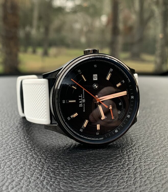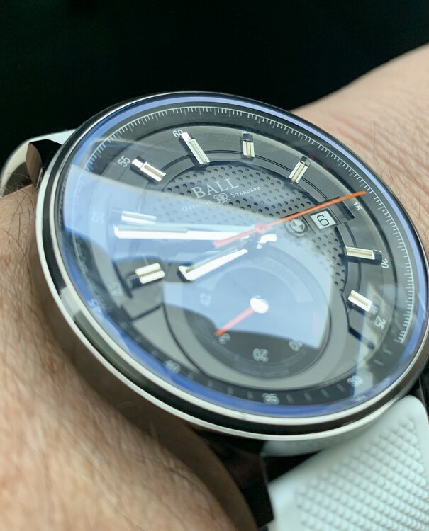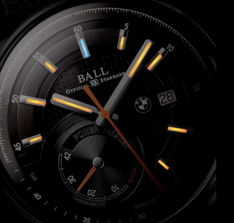 - The tritium is cool but not as bright as expected. Compared to other Ball models it’s conservatively used and a quick google shows that the orange and blue used are toward the bottom of the brightness scale. It took a while for my eyes to adjust to the dark and honestly traditionally lume is brighter immediately. But I woke up in the middle of the night and the Ball was still going and easy to read - but not glowing by any means.