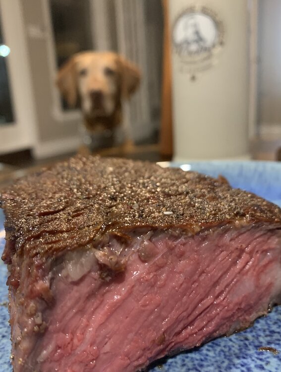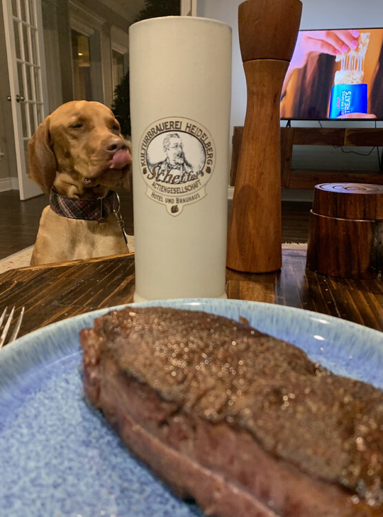 7. Friday night with a wagyu strip and a couple interested bystanders
