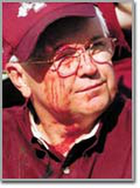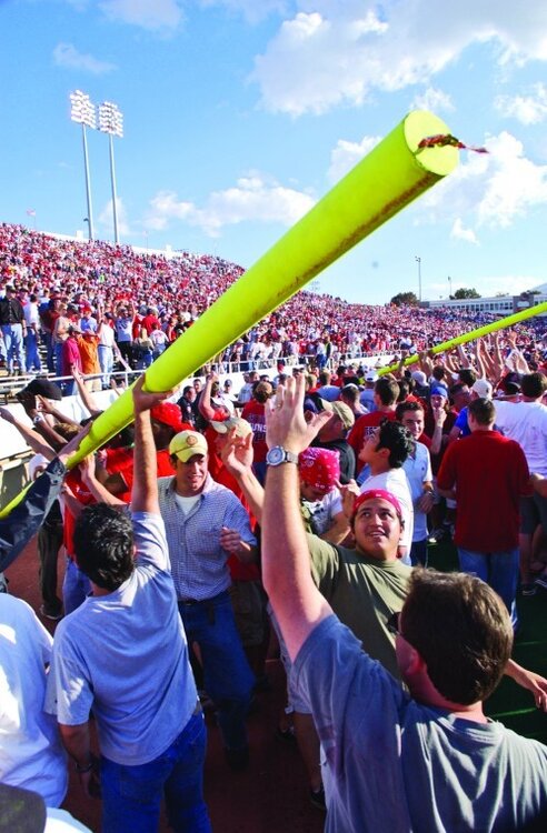 21. Tell him to watch out - and bring his binoculars ... "I was trying to keep them from coming up in the stands," McKinney said. "I pushed two of them down, and grabbed my binoculars and said, `The next one that comes up gets it.' Then, somebody who was already in the stands, I guess, came up and knocked the fool out of me. I saw him hit me -- a kid in a red shirt. "It was like the Alamo," McKinney said. "They were coming up over the wall."