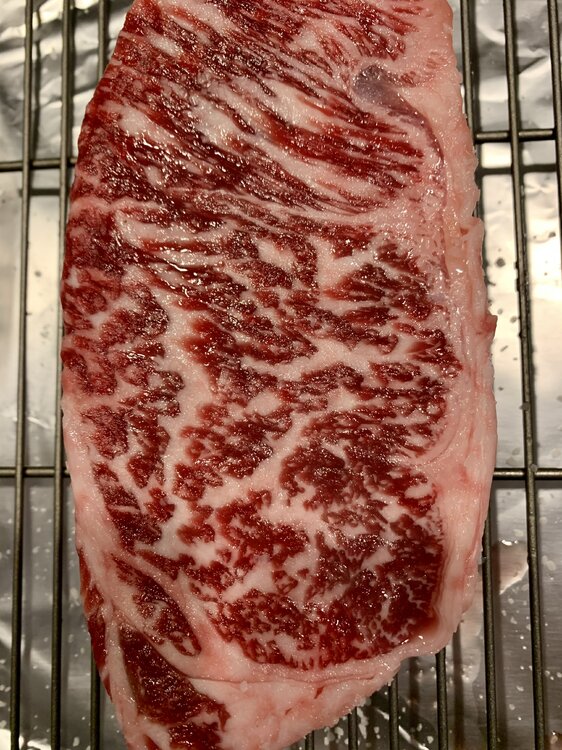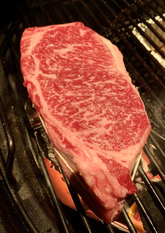 1. Lazy Tuesday night. NY strip and figuring out the new grill. Thursday is looking like the big day. Double cut prime bone in ribeye with my best friend and his 2 sons.
