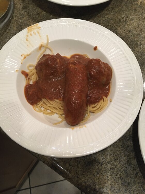 20. buncha nerds consumer electronics snobs up in here. -------- wife came home to make meatballs and spaghetti. ever the great project starter, I get to finish it up, including the plating. here you are, dear