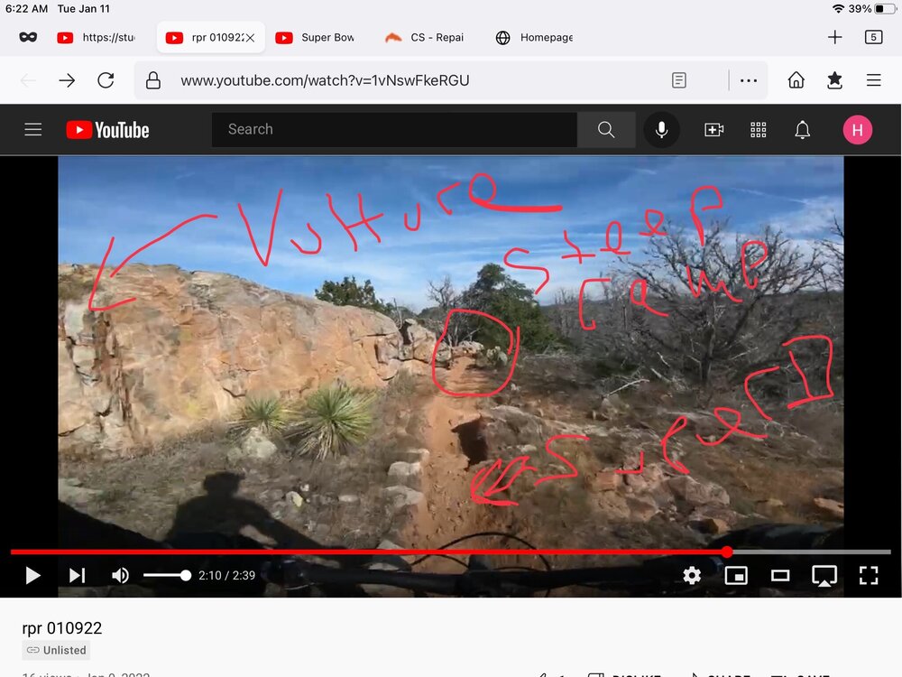 1. Vulture's pretty far up Decision Point. there's a sign for it on DP Trail, but of course that doesn't tell the whole story. you follow that jeep road about 75 yards toward the big rock pile. that rock pile is where the start of Vulture is. you actually cross Super D from that jeep road to get to it. in the video at about 2:10, there's a run up to a steep ramp thing over a boulder on Super D, with the big rock pile on your left. right about where that video segment starts is next to the path up onto a shelf for the Vulture start. it's not easy to see, and if you can ride up that path thru the cactus, rocks and grass, you are a true stud mtber in my book. see pic below. I'm not good with words. the end of Vulture is fairly close to the end of SuperD. riding along that high fence, you'll come to a burned out car near the base of a dam for a stock tank. follow the fence on your left, up the steep grind to a deer stand and you're very close to Race Loop and Blue Loop, iirc. basically, after you do those two 3-footers on SuperD to the finish, the end of Vulture is about 100yds to your left. I think you can see the stock tank as your coming down SuperD. but now you've got me wondering about Full Commando. only done it once. isn't it somewhere below the 'chapel'?