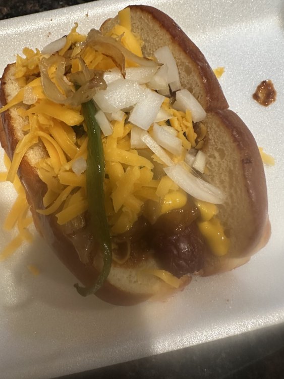21. Last night bacon wrapped chili dogs hit. Grilled onion and jalapeños with an extra topping of raw onions. Woke up in an unpleasant way this morning