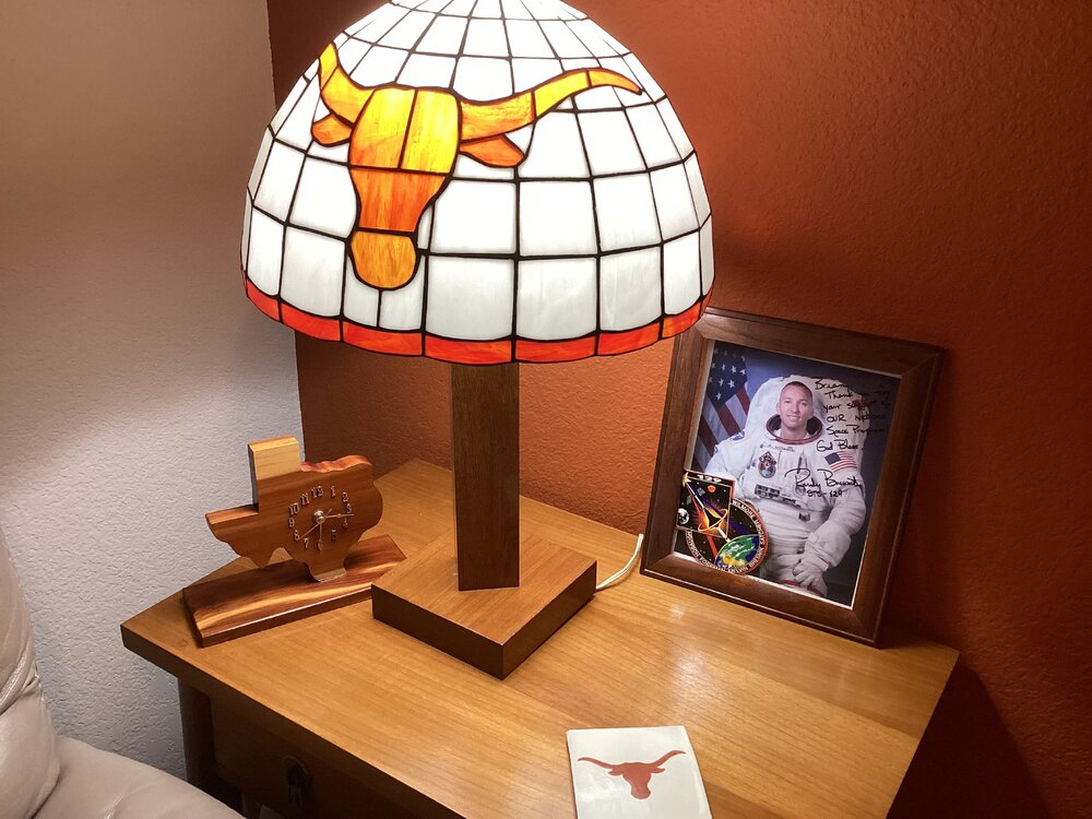 12. While living in Puerto Rico during the early 1950s my Dad acquired some beams of Ausubo wood that were salvaged from a renovation of a 17th Century Spanish colonial building on our US Army post (Fort Brooke). That wood supposedly has a Janka hardness of 3130 lbs. He had several table lamps (two single & one double) and some small items made from it, and I inherited this one single lamp…..(of course I attached the stained glass shade): The side table is Taiwanese teak, custom made when we lived there in the late 1950s.