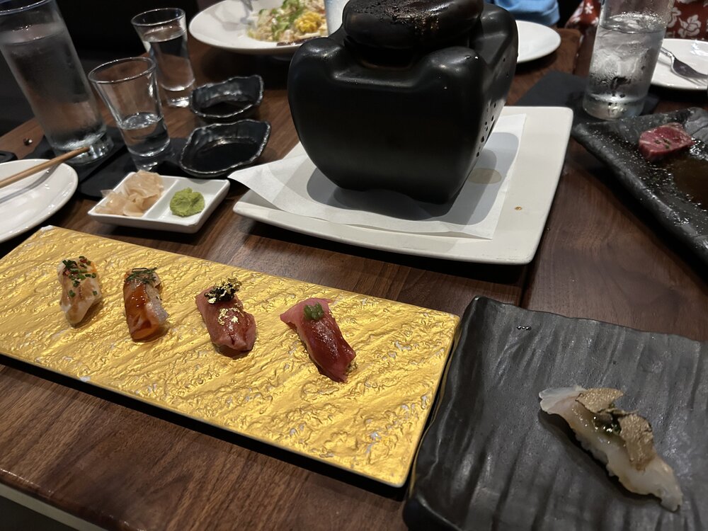 Soto is one of my son’s favorite places. H & his wife took us (our 1st visit) & granddaughter (no pics) there this evening. Shared a wide variety of of Sushi, Waygu, shrimp, chicken etc….