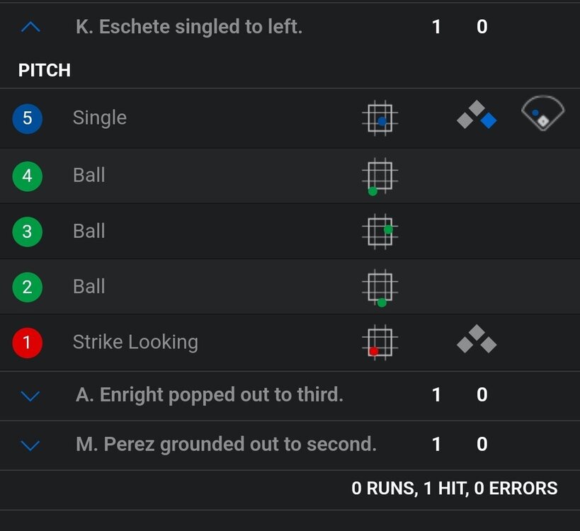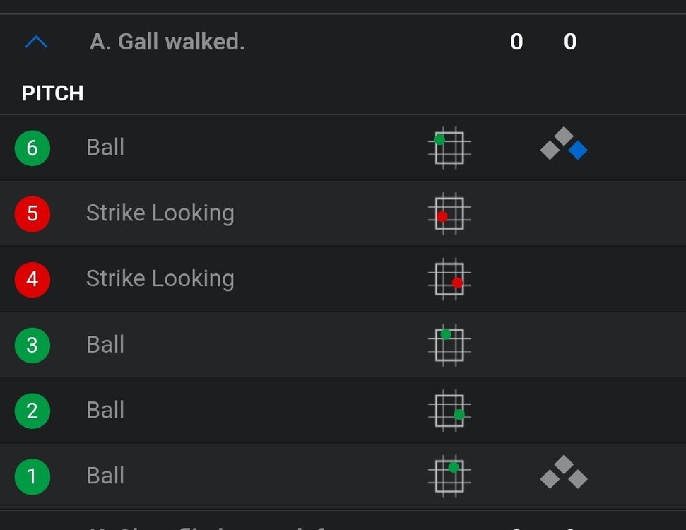 21. I have been thinking that I must be seeing things on some of these balls and strikes from the home plate umpire. I found a pitch tracker on the ESPN app. This is the strike zone from the left handed batter for aggy that singled to left field. I was especially interested in pitch #3.