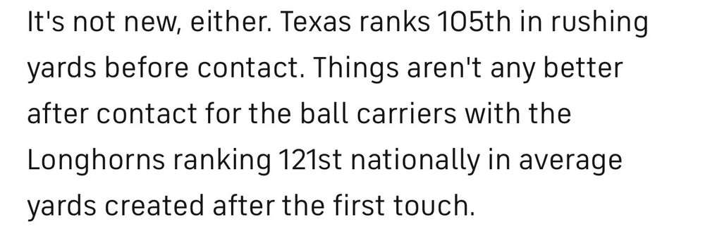CBS sports ran with the headline yesterday: “Arch Manning's struggles are real. Texas' failures -- whiffs at OL, a deficient supporting cast -- are worse“ and the click bate lead in to the article was basically, “is it Sark or is it Arch?” If we get clobbered like a Watermelon like Gallagher used to do with his Sledge-o-Matic this weekend and Arch isn’t the main issue (he wasn’t in the Florida game) I expect to see even more widespread public criticism of Sark. Just sayin’ -