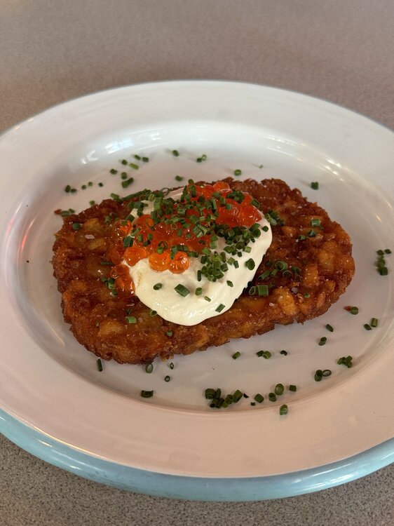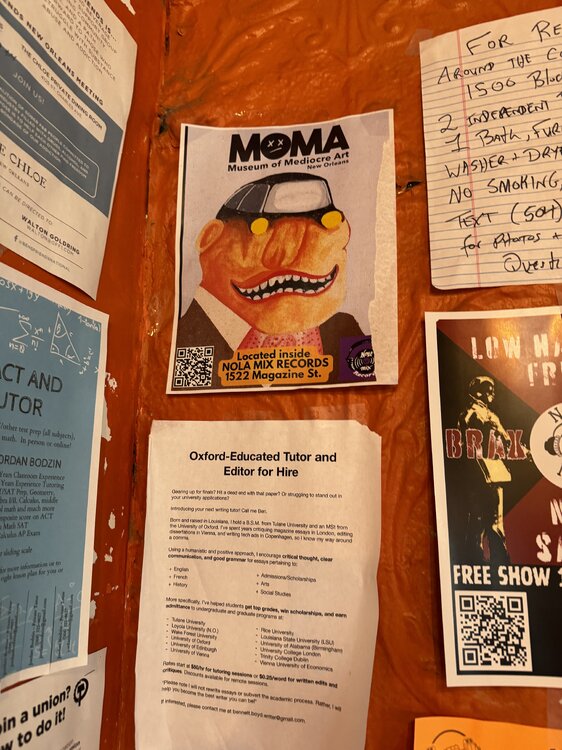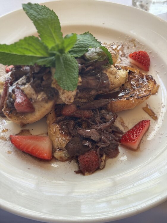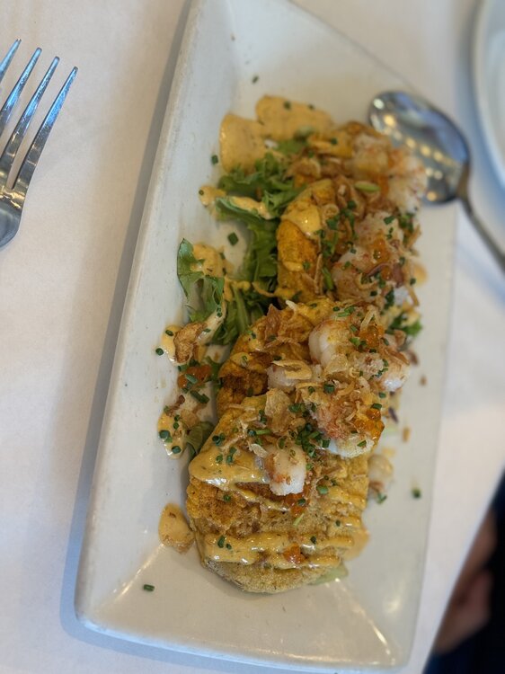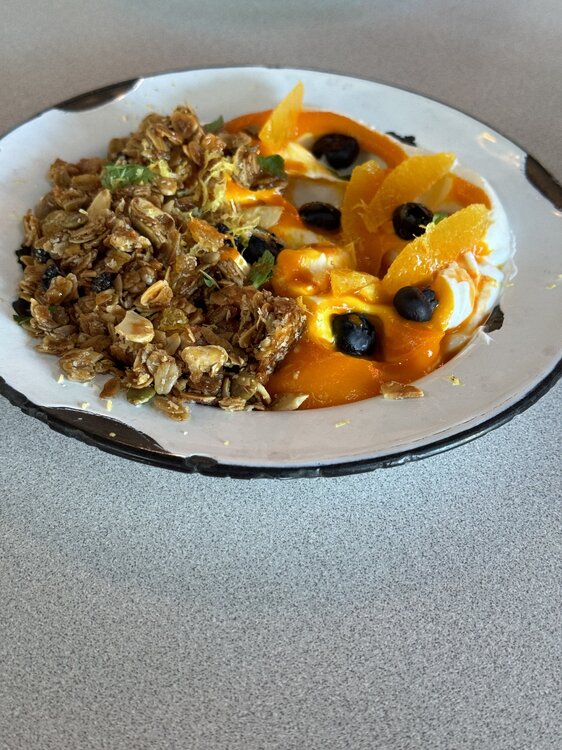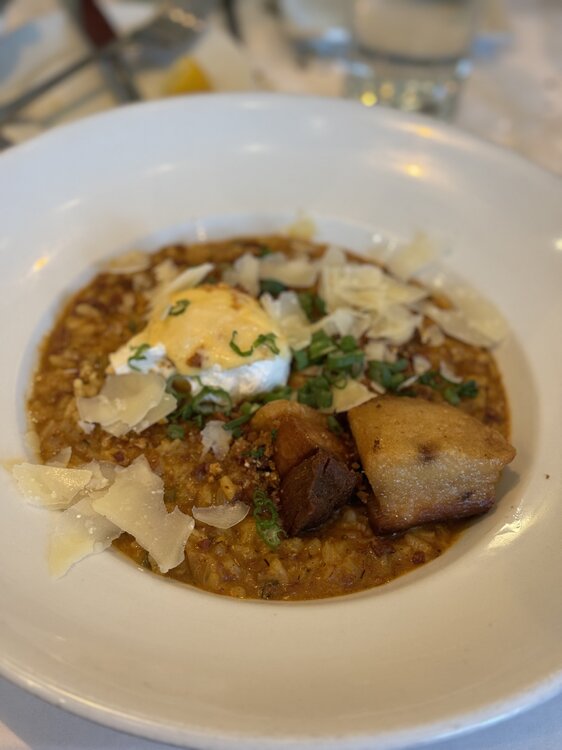 Typing this all on my phone so excuse any fat finger mistakes. We are here for my mom’s birthday - she’s turning 72 and hasn’t ever really been to New Orleans, so I planned to hit a lot of places that I’ve been and that I’ve been wanting to try to show her what she’s been missing. I’d never been to GW Fins, but based on this thread it was our first night’s dinner. We had an early reservation, but had to push it back because the rest of my family was delayed getting in. It was worth the wait. I didn’t get pictures of everything, just a couple of entrees - Scalibut was outstanding and the dry aged yellowfin was otherworldly: The table also had the lobster dumplings and smoked yellowfin dip for starters; Parmesan crusted sheepshead and sea scallops for additional entrees, and desserts that were outstanding - the Salty Malty ice cream pie took the honors. But no photos of any of those. So far it’s been the best - and most expensive - meal of the trip. We are staying off Magazine in the lower Garden District. This morning had some coffee at Mojo Coffee House and laughed about this flyer: Then walked down to Molly’s Rise and Shine for a light breakfast since we had Jazz Brunch booked at Commanders. It might not photograph well but this Roasted Carrot Yogurt with Granola there is one of the best dishes in New Orleans in my opinion: And this hash brown with anchovy crème fraiche and salmon roe my sister ordered was delicious: We went to Commander’s Palace for Jazz Brunch, and it hasn’t lost its fastball - everyone enjoyed it. My septuagenarian mom told the Jazz trio she was a Robert Johnson fan and they played a jazz version of Crossroads for her; complete with using her knife along the frets on the guitar to get the sound right. Bette than “somewhere over the rainbow” a table asked for a few minutes earlier. I forgot to take photos of much there, but I did get one of my entree - a duck confit / Leidenheimer bread french toast dish they called “Ponchatoula Strawberry Glazed Duck Pain Perdu” I don’t know how to describe it - it all worked but I’d never think to put it all on one plate. I went and looked up the description because there’s no way I’d remember it all: “Citrus confit picked duck leg rolled in macerated strawberries and sticky praline syrup over griddled Leidenheimer French bread stuffed with French Truck café au lait spiked Creole cream cheese.” I also had the turtle soup and the soufflé, and a lot of brandy milk punch and left happy - but also needed to walk around the Garden District after all of that. We did a lot more walking and sightseeing after that - took a street car down to the quarter, went to Jackson Square, etc. My mom is an artist (watercolors and printmaking for the most part) and has never met a stranger, so she was in her element. We came back to the Garden District for dinner tonight and went to Shaya. I didn’t get any good pics there and even if I had, it wouldn’t have done it justice. I don’t think fancy hummus/baba ganoush/masouka/kafta kebabs/etc and pita bread are all that photogenic, but it was all amazing. And the cocktails all hit it out of the park. I haven’t seen Shaya mentioned here much but it should be on your radar if you’re in town for more than one day. It was a great change of pace, and just plain great to be honest. GWFins gets the slight nod from me for best meal of the trip so far, but this was a close second. We have a late breakfast/early brunch reservation tomorrow morning at Atchafalaya which I’m looking forward to, and then it’s back on a plane to Austin while the rest of my family drives back to Houston/San Antonio/Corpus. All in all, not a bad first trip to New Orleans for my mom - I hope she comes back a lot now that she’s retired and has the time. There’s a lot more places I’d like to show her that we didn’t have time to get to.