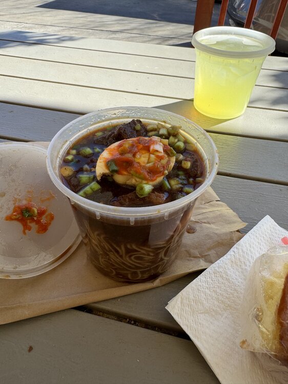 The Cajun trailer at the food mart at 45th and Burnet is legit. I think it is officially called Everything New Orleans, but I prefer their trailer spelling of “ERR-THING NEW-AH-LINS” https://everything-new-orleans.square.site/#14 I’ve had the PoBoys (huge, big enough to share for sure), gumbo, cornbread, cabbage, etc. And everything has been good to great. Today is cold, so I am trying the Yakamein: It is fantastic. Not too salty and huge chunks of beef.