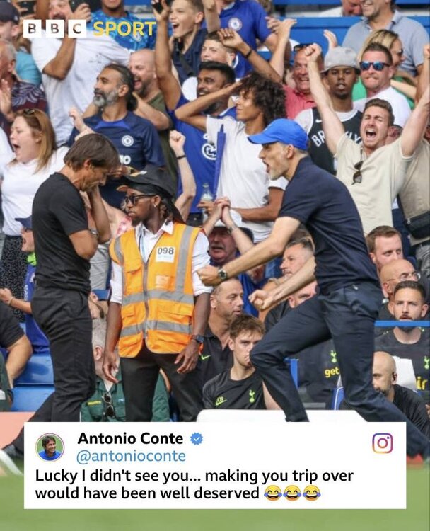 11. Replay shows tuchel holding onto contes shake and pulling him