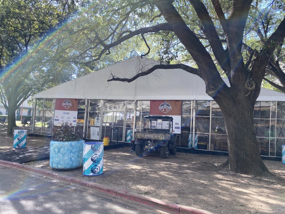 22. No enforcement of masks today. 2/3rds no mask. ESPN Game Day is setting up in the West side Cotton Bowl Plaza. This area was already a logistical nightmare any year. Be prepared for that side of the stadium to be a complete cluster fuck. I believe Immamac is pregaming at the Magnolia Beer Garden. But for some of you guys that are early enough but not going to the game, The Embacadero building just outside of the eastern side of the stadium had two interesting indoor choices with TV’s - a small margarita Tex-Mex cantina, and a larger fried fish place called ‘The Dock’. There were also two of the larger usual choices heading towards the main concert stage. And then there was something super interesting being setup just north of the stadium connecting to the back of the hall of state. But this looked like you might needed to have friends in higher places. photos:
