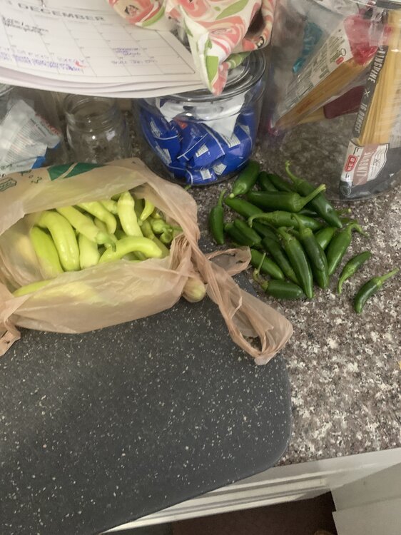15. Just pulled enough jalapeños for 2 pints of pickled. Will do fried peppers with the bananas. peppers are still flowering and will likely have at least 1 more harvest.