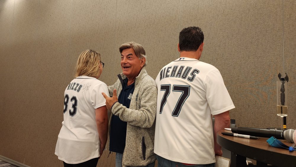 We were part of a tour group, and the tour included brunch with "Mariners personnel." I figured it would be a batboy; my wife was hoping for Danny Wilson or Cal. Instead, this guy walked in and entertained us for an hour with some great stories. And he was kind enough to sign autographs for everyone and take as many pictures as people wanted. This couple happened to wear the right jerseys.