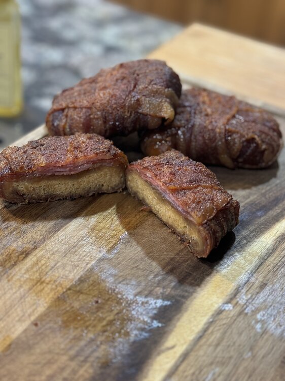 3. Kinda like an upside down pineapple cake. Sugar carmaluzed on the bacon nicely