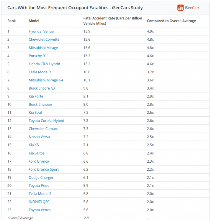 No agenda with the Rolling Stone article at all... Here is the full list of of the 23 vehicles that iseecars.com deemed "the most dangerous cars on the road."