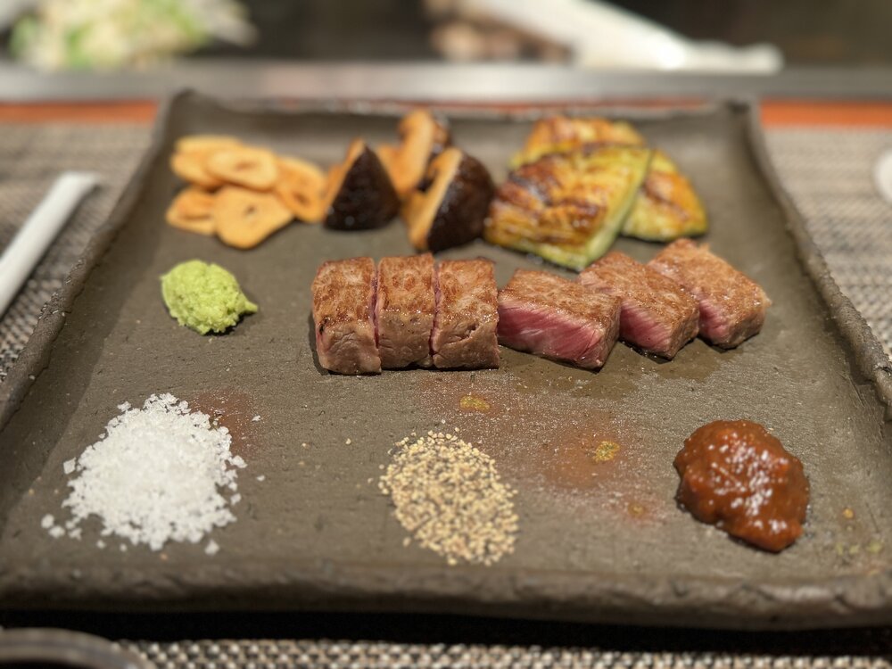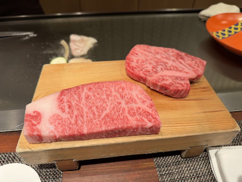 14. In the middle of our two weeks here in Japan. (Kyoto, Osaka, Tokyo) been pretty hot but still enjoying our time here. Had a Kobe (A5) sirloin here in Kyoto last night at Mouriya. Kobe on the left, Wagyu on the right. Pretty, pretty good!