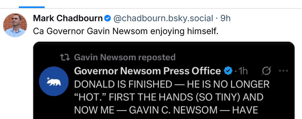 18. Moving to the center no longer makes sense in a general election. If it ever did. Credit for his recent social media game, but fuck Gavin.