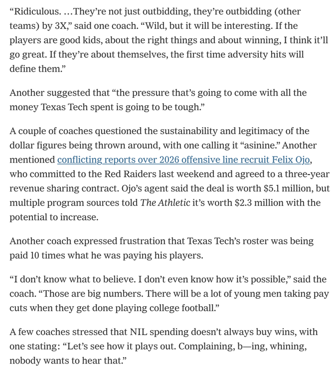 2. for the record - The Athletic's reporting https://archive.ph/a1EVe "Texas Tech built ‘best team money can buy.’ And Big 12 coaches have thoughts"