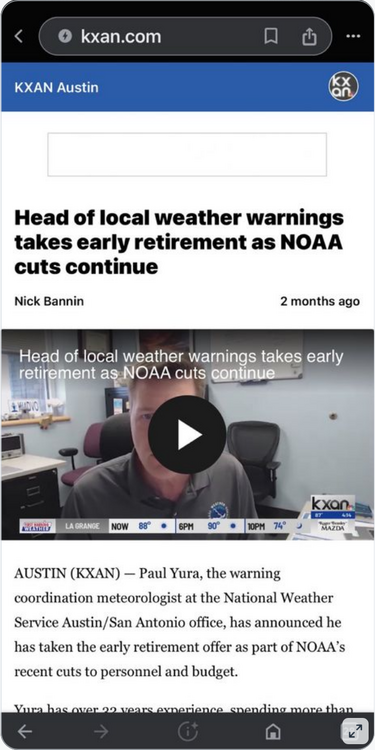 6. https://www.kxan.com/weather/weather-blog/head-of-local-weather-warnings-takes-early-retirement-as-noaa-cuts-continue/ position left vacant