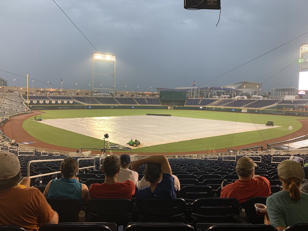 15. It has completely stopped raining. Movement again by the grounds crew.