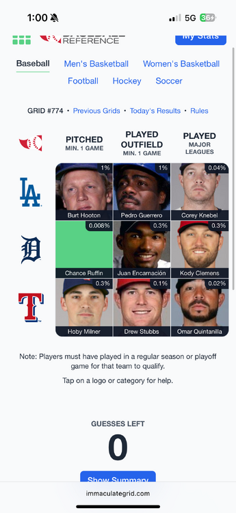 1. Best I could do ⚾️ Immaculate Grid 774 9/9: Rarity: 3 IMMACULATE! 🟩🟩🟩 🟩🟩🟩 🟩🟩🟩 Play at: https://immaculategrid.com/play