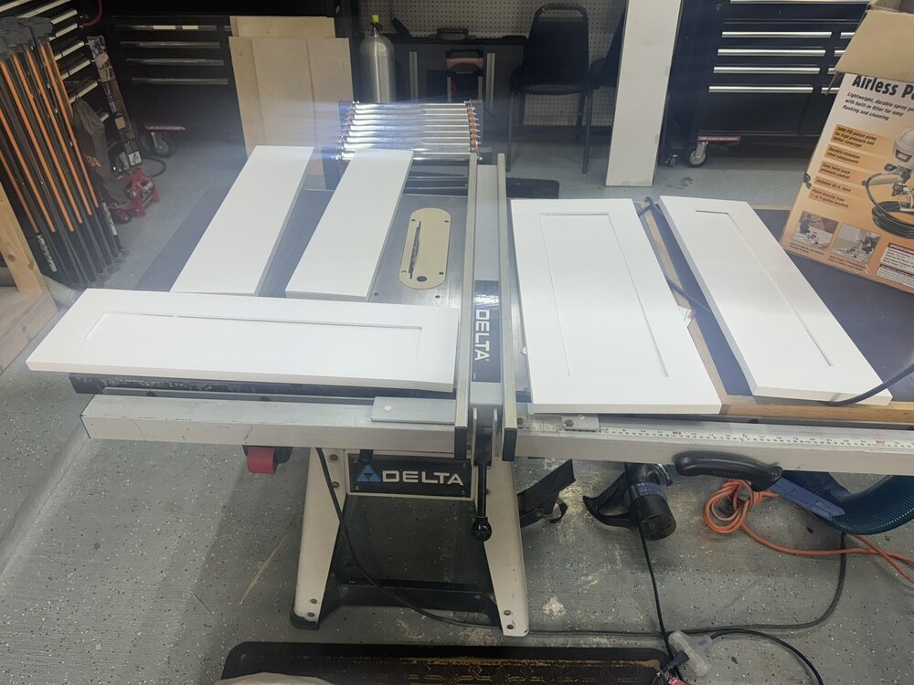 Not finished still a good amount to do, but sized it up and got the drawers and drawer fronts installed. I built the top piece to go on as well. Built the top shelving and above that will be my rack mount for my media server. First coat of paint on, hope to have it all done by Friday. Might get a bug up my ass and install the drawer pulls tonight