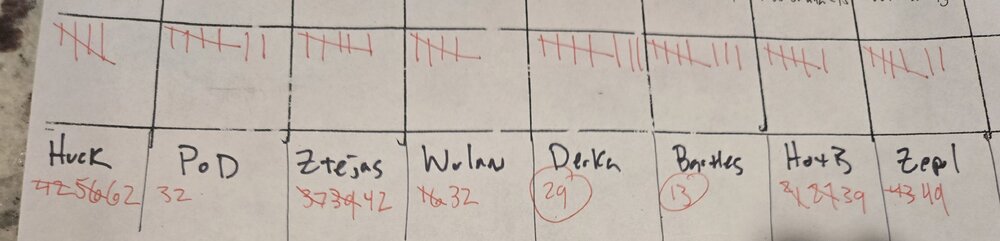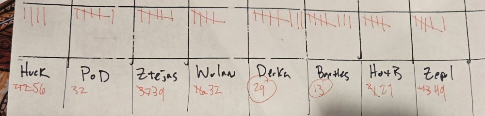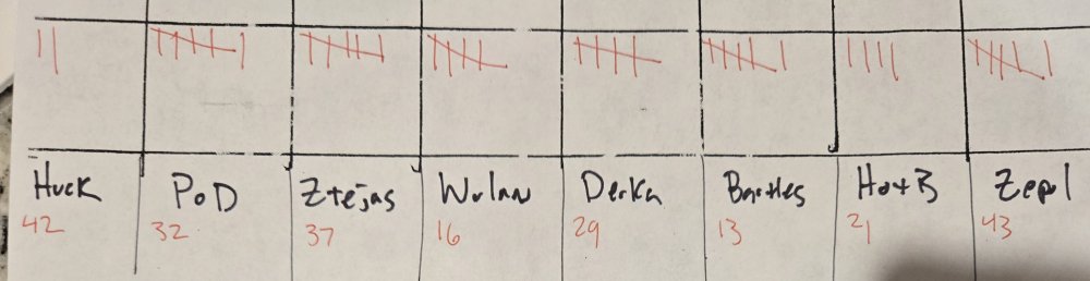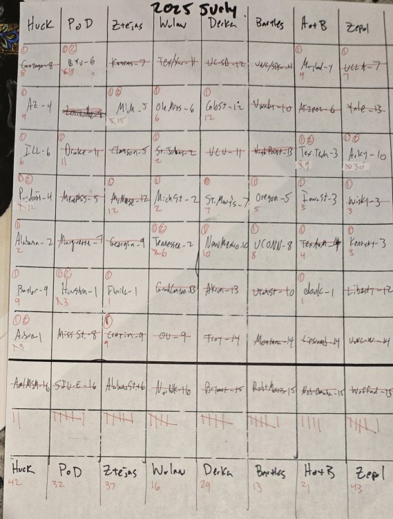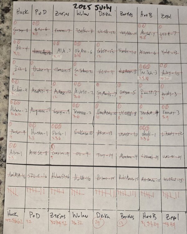 20. Scores through tonight. Double check my math, etc. Tally marks are teams lost so far.