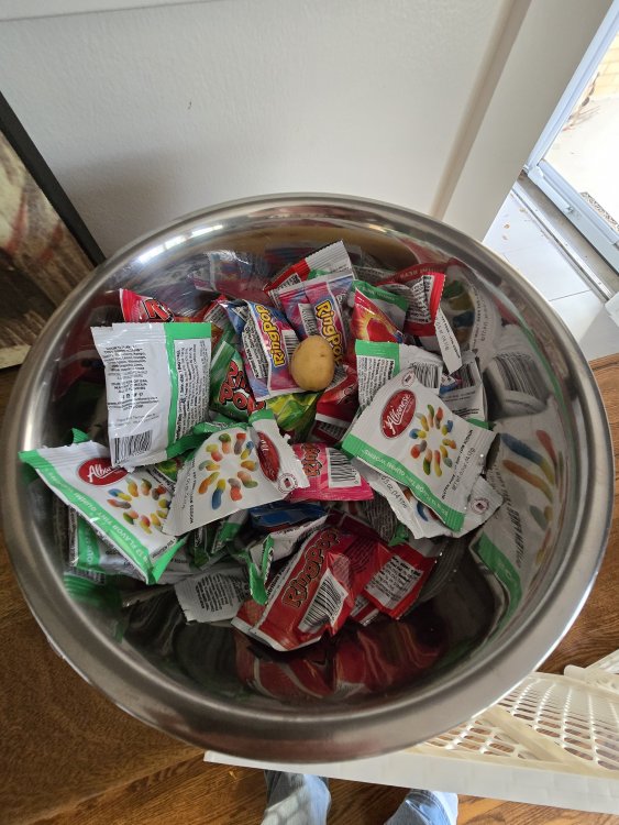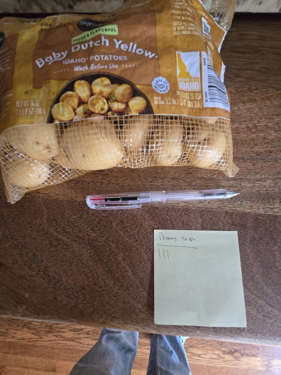 14. I purposely put only one potato into the treat bowl at a time, and told everyone who remarked that there was only one potato allowed per group. Eight kids ultimately chose the potato, and there were two fights over the potato. One little girl told me that she would be back later, but she never returned. She'll probably throw a rock through my window later tonight instead.