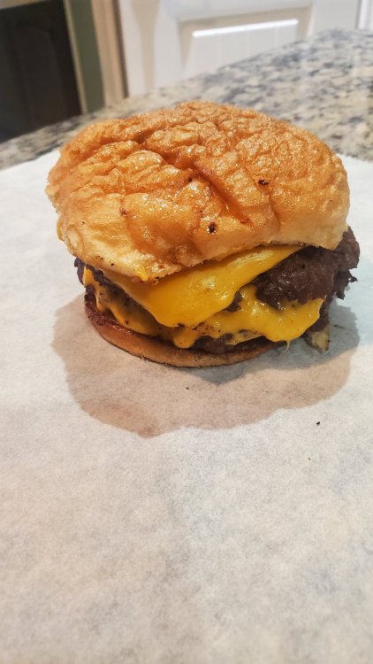 20. Took my first shot at them this evening in the Blackstone. Got it for Father's Day and have barely used it because of the heat and the fact that I'm a damn mosquito magnet. Not a great picture but it was honestly one of the best burgers I've ever had. Got lucky and nailed the crust, the lace, the seasoning, all of it. I was stressing because i was trying to time five burgers (so ten patties) at the same time. Not pictured: burger sauce, grilled onions, japs.
