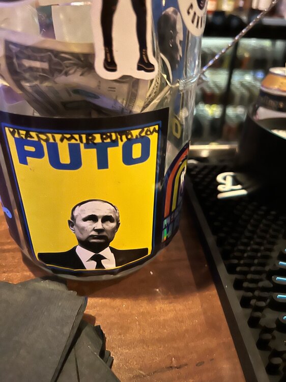 5. I was walking the dog before heading to the game today and I live in a non-descript Austin neighborhood. After about a block I see a couple guys standing around a parked red mercedes. They look about as cliche Eastern European as you can get. They start staring at me as I approach down the sidewalk. As I passed one of the guys says "Slava Ukraini" and I realize I am wearing a (rather tacky) sweater with "Don't Tread on Me" in Cyrillic against the Ukraine colors. I think I bought it drinking-while-Etsy in the early days. I just responded with a smile and a Slava Ukraini back. What a weird random encounter. I, for one, welcome our new Ukrainian military advisors.