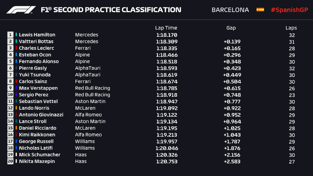 All this talk of track limits, at least we won't have to worry so much about those in Monaco in a couple of weeks. Also, how many Haas chassis does Mazepin write off that weekend? ha McLaren and Red Bull a little down the order in FP2 and 1 second covers the top 16.