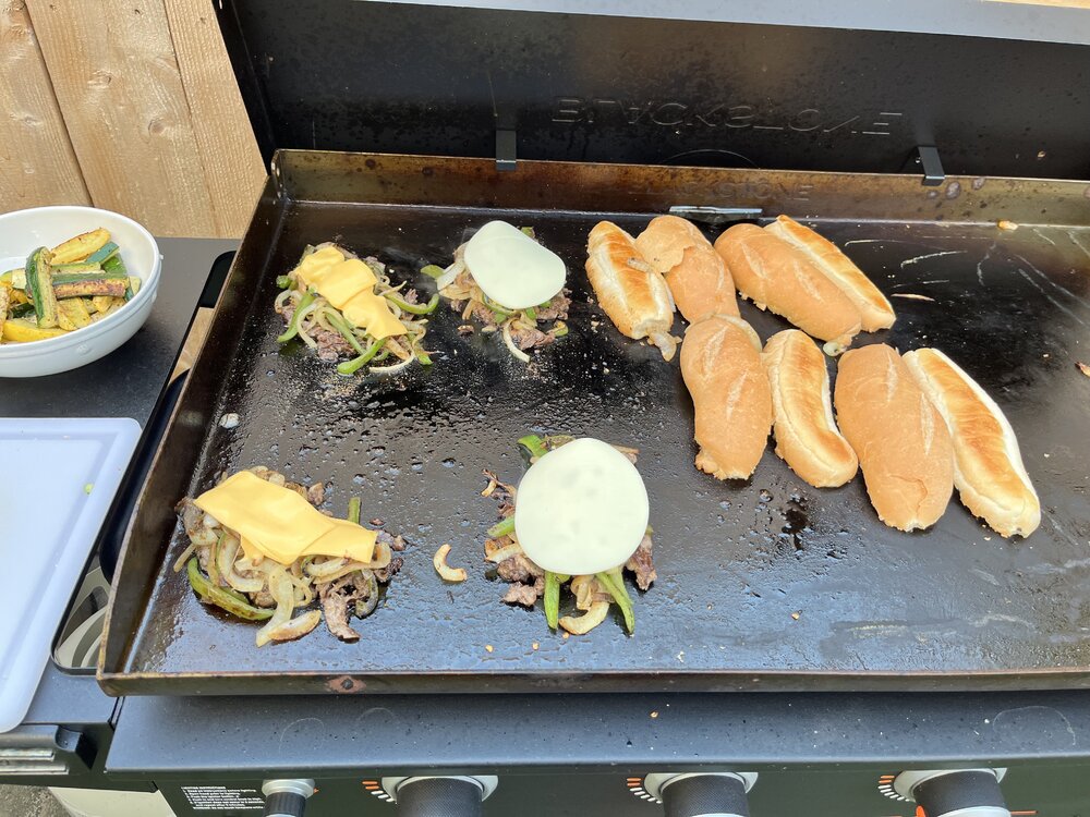 20. I found the shredded beef patties, essentially, at HEB like a restaurant would use and they turned out great. American cheese was the winner I think. Maybe just needed more provolone. Also, I just really love making cheesesteaks on here. Smash burgers are great but always end up being a crunch at the last minute for me… not sure it gets much easier than these.