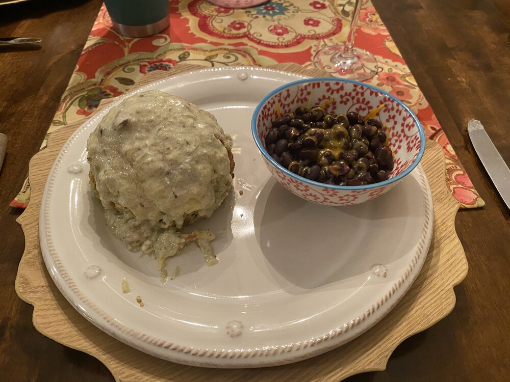 18. Didn’t feel like bacon breakfast tacos this morning, and remembered I had some kielbasa in the fridge, so I thew it down with some leftover black beans and some Monterey Jack cheese. Topped liberally with El Gallo jalapeño. Strong to quite strong.
