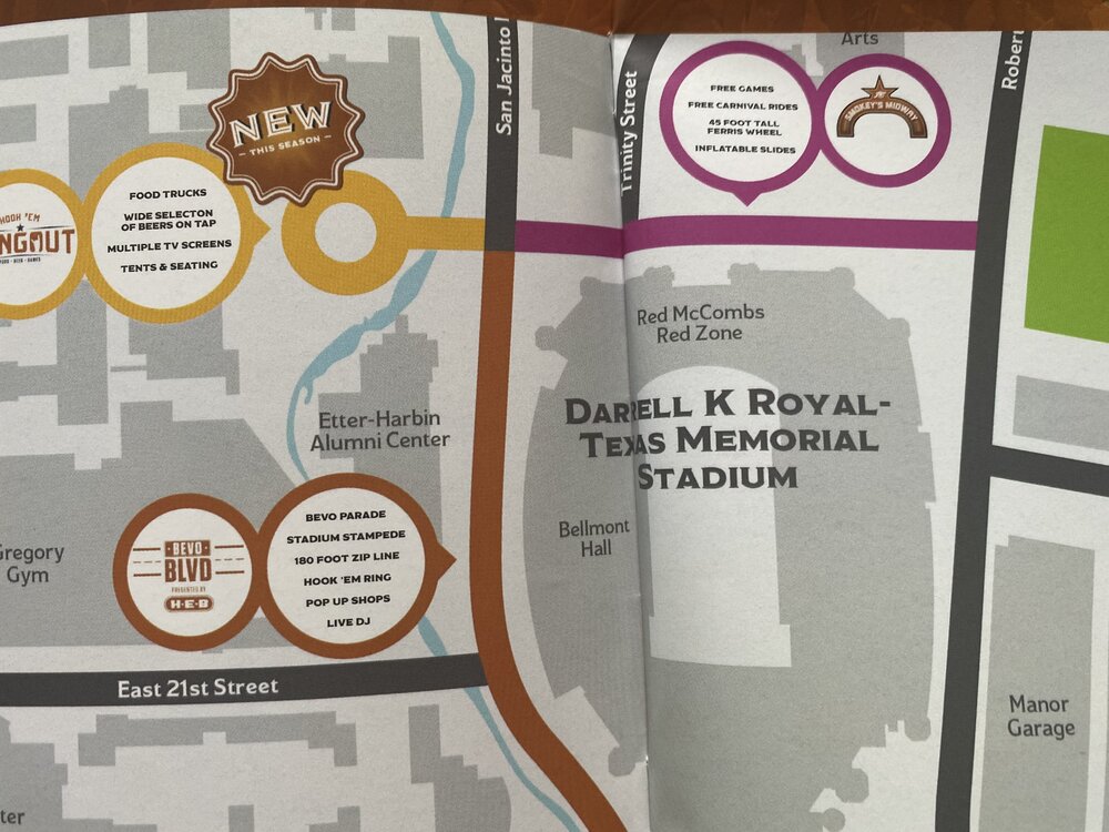 2. From the booklet I got with my season tickets. Also, there will apparently be a zip line along Bevo Blvd and a Ferris wheel in the Smokey’s Midway area