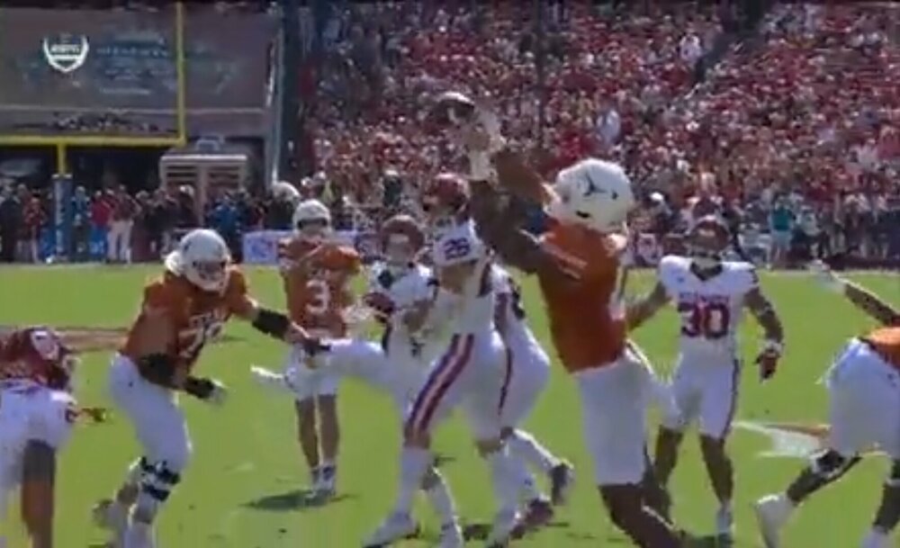 I think there is blame on both Ewers and Sanders for that INT. Ewers throw was a bit high and inside, which led Sanders directly to the OU safety sitting on that route (chest and ribs exposed). That is pretty much the definition of hanging your receiver out to dry.
