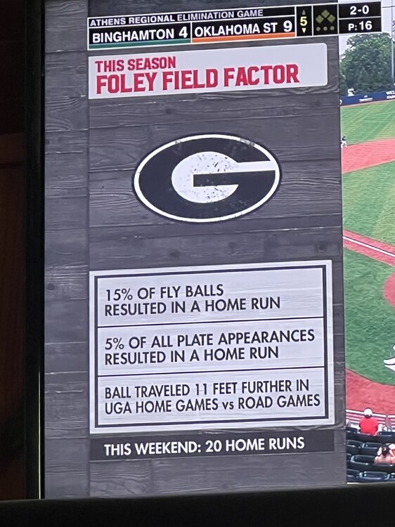 20. They just said that UGA’s Foley Field is only 314 to right but these home runs are clearing the scoreboard and tree lines. Binghamton just got a HR themselves.