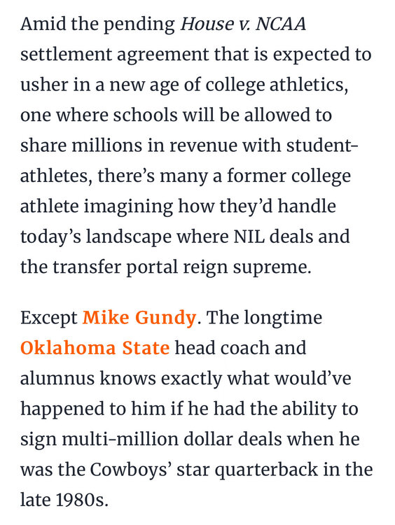 7. Lol https://www.on3.com/college/oklahoma-state-cowboys/news/mike-gundy-believes-he-would-have-been-like-johnny-manziel-if-he-had-todays-nil-money/