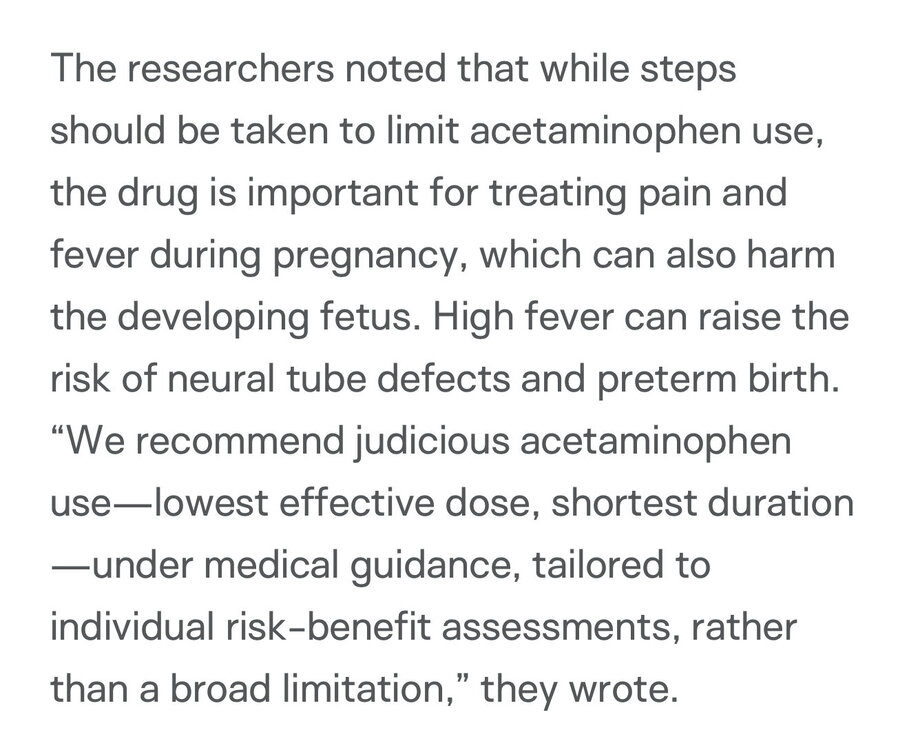 7. So….. the Harvard article all the dipshits are citing says they have found some correlation and are continuing to research possible causation. Also that the correlation only exists for moms that take Tylenol for four straight weeks (WTF?). Oh and the kicker is that they still recommend using acetaminophen when needed because fever is far more dangerous to the fetus. So they took this and ran with ”We solved autism, don’t take Tylenol ever! It’s bad!” This. Fucking. Timeline. https://hsph.harvard.edu/news/using-acetaminophen-during-pregnancy-may-increase-childrens-autism-and-adhd-risk/