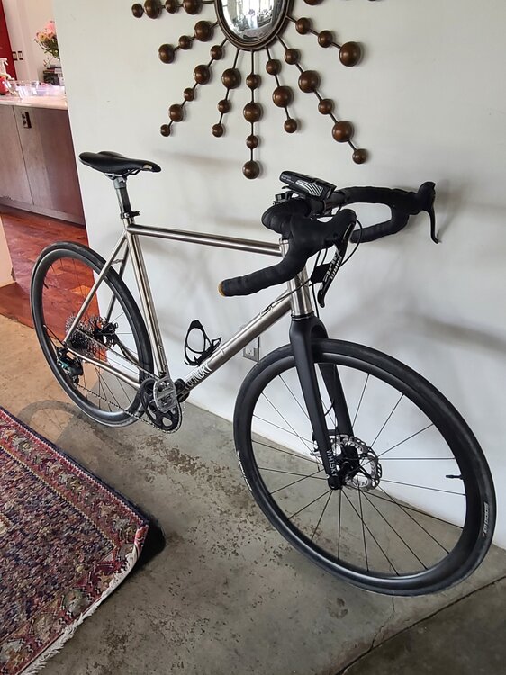3. Recommend to me a comfortable seat for long rides. I just built my all road Ti bike and the old WTB seat us not cutting it on 50+ mile trips. Not concerned about weight. I have the bib thing worked out, but might need some recs there too. Cost is no object on the bibs. Bike build: Sram Apex mech disc shifters with Ratio 1 12 speed mod. Force 46 tooth cr with force cranks, XPLR 10-44 in back with Force 1 rd. Scribe carbons with 28mm tires for the road set and some shitty alloys with 35mm for the gravel set. Mech disc brakes for easy maintenance. Pics