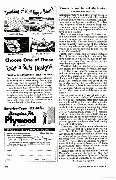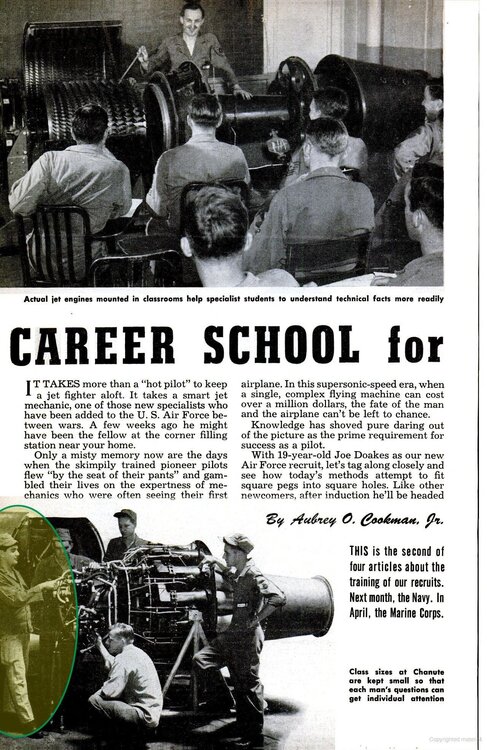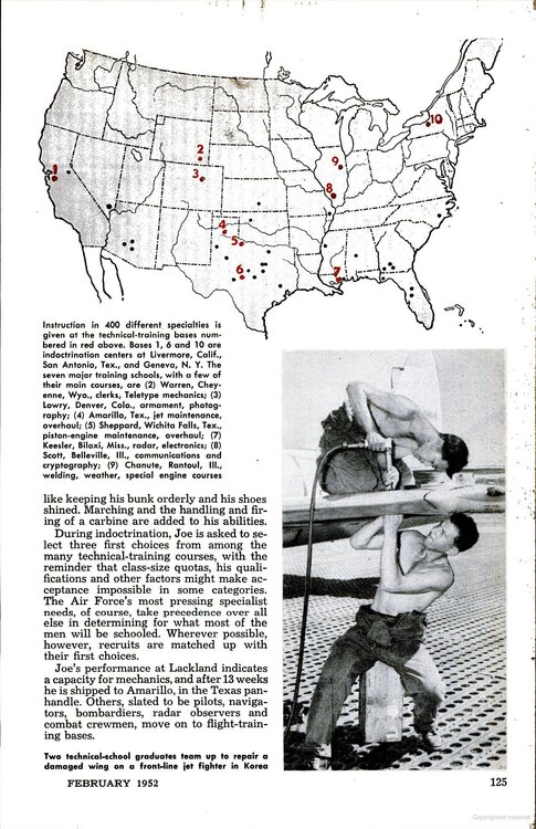 8. Thanks for asking! TLDR. I've read all 1200+ pages of this thread, so I'm going off on a tangent... I'm an Air Force Brat, born at Bergstrom. My dad was from Pflugerville and was a jet engine mechanic in the Air Force (Shepard, Chanute, Bergstrom x 3, Clark, Holloman, Eglin, Taiwan, Andrews). I got to see really cool stuff growing up; everything that flew, B-52's rolling off the runway one after the other, sonic booms, 20 mm Vulcan cannon obliterate an old ambulance, C-130 touch-n-go dropping off a cargo, napalm bombing and strafing runs at night, Thunder Birds/Blue Angels every year. At Eglin, the Navy would coat target docks w/ napalm, and tow them to the Gulf for target practice; we used to fish off the target docks, sometime w/ the dried napalm on 'em; good thing we weren't a bunch of fire bugs. Pretty sure he worked on AF-1; he was able to get a "jump" on the weekly shuttle between Andrews & Bergstrom, meet us for lunch, back & forth the same day. I went to school w/ the kids whose dad flew Air Force 1 for LBJ. Clark Air Base, Philippines - American Day, ~ 1959-60; Notice the ladies in dresses and heels. Armed Forces Days during the 60's was quite the show case of military might. I'm the kid in shorts on the right. Philipine Air Force, F-86 Sabre Republic of Korea Air Force, F-86 Sabre F-84 Thunderjet, not sure what country USAF F-100 Super Sabre USAF - F-101 Voodoo USAF F-102 Delta Dagger USAF B-47 Stratojet USAF - TM-76 Mace B USAF Thunderbirds - F-100 Super Sabre (my favorite). Notice the locals. USAF Thunderbirds, F-100, high speed chriscrossing on the deck. Kudo's to pop, snapping the pic as they crossed. House #2 at Clark AB. These were Army barracks during WWII/Korea; we had the whole house. Our front yard at Eglin AFB ('62-'66) looking at Choctawhatchee Bay 7 miles across the bay from Destin. Dad was interviewed for the Popular Mechanics article, "Career School for Jet Mechanics" in Feb '52. Dad highlighted.